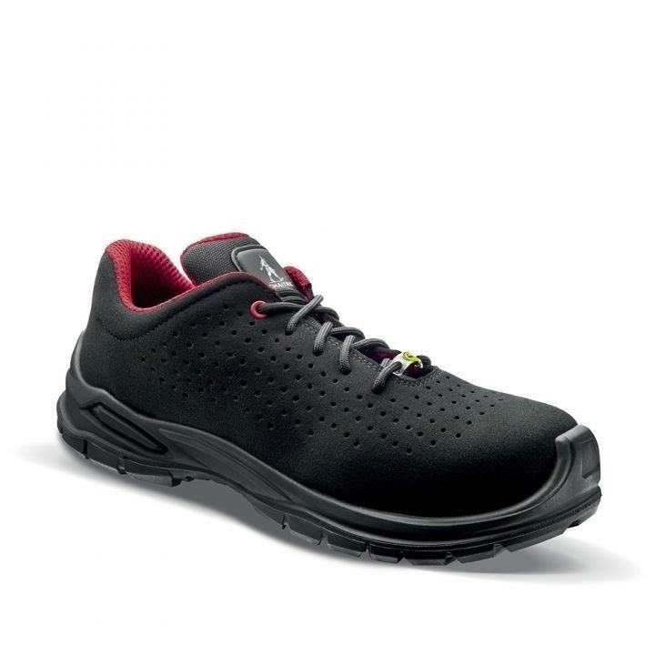 Nizek zaščitni čevelj ROY ESD S1P je mehak in udoben varnostni čevelj, ki nudi odlično zračnost stopala. Perforiran zgornji del iz mikrovlaken pomaga proti potenju stopal.